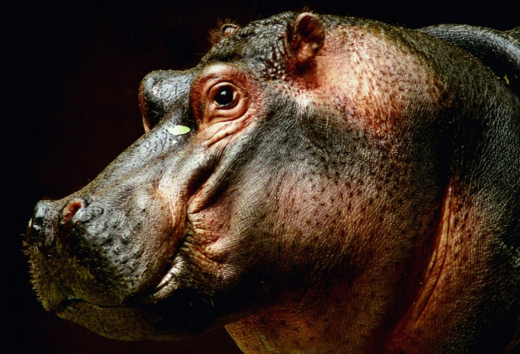 ‘All afternoon, the three raged their blinking battle as the sun dropped in the west. Still, the lions’ eyes glowered. Still, the hippopotamus’s eyes glowered. Still, the lions’ eyes bulged. Still, the hippopotamus’s eyes bulged. Still, the lions’ eyes watered. And still, the hippopotamus’s eyes watered.